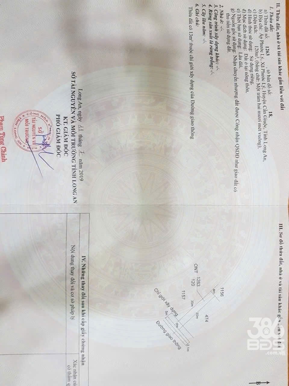 Bán đất thổ cư hẻm xã Phước Lý, Cần Giuộc dt 120m2 giá 1,6 tỷ